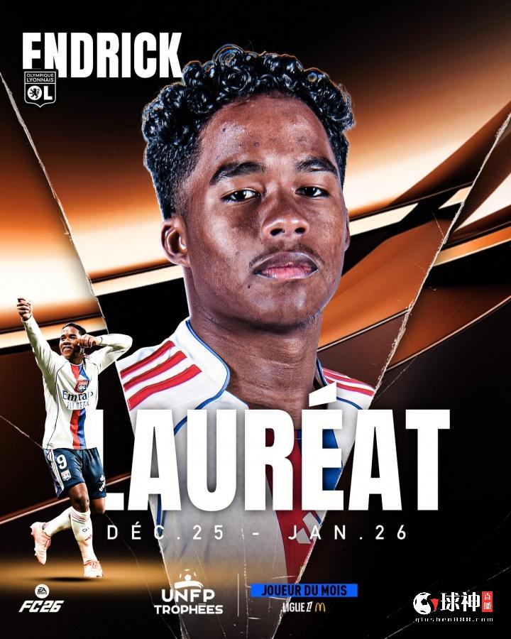 球神直播02月15日讯 法甲官方宣布,里昂前锋恩德里克当选法甲1月最佳球员,恩德里克在1月的三场联赛中贡献3球1助,对阵梅斯曾上演帽子戏法。